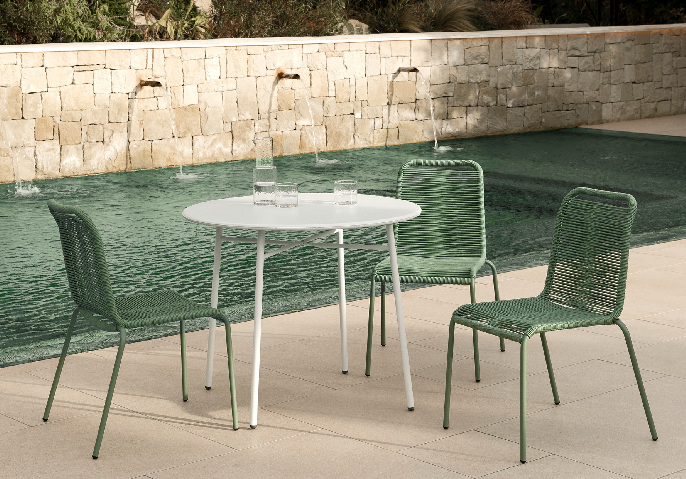 Bowen une la elegancia del metal con la autenticidad de la cuerda trenzada a mano. Su estructura es 100% apta para exteriores. |