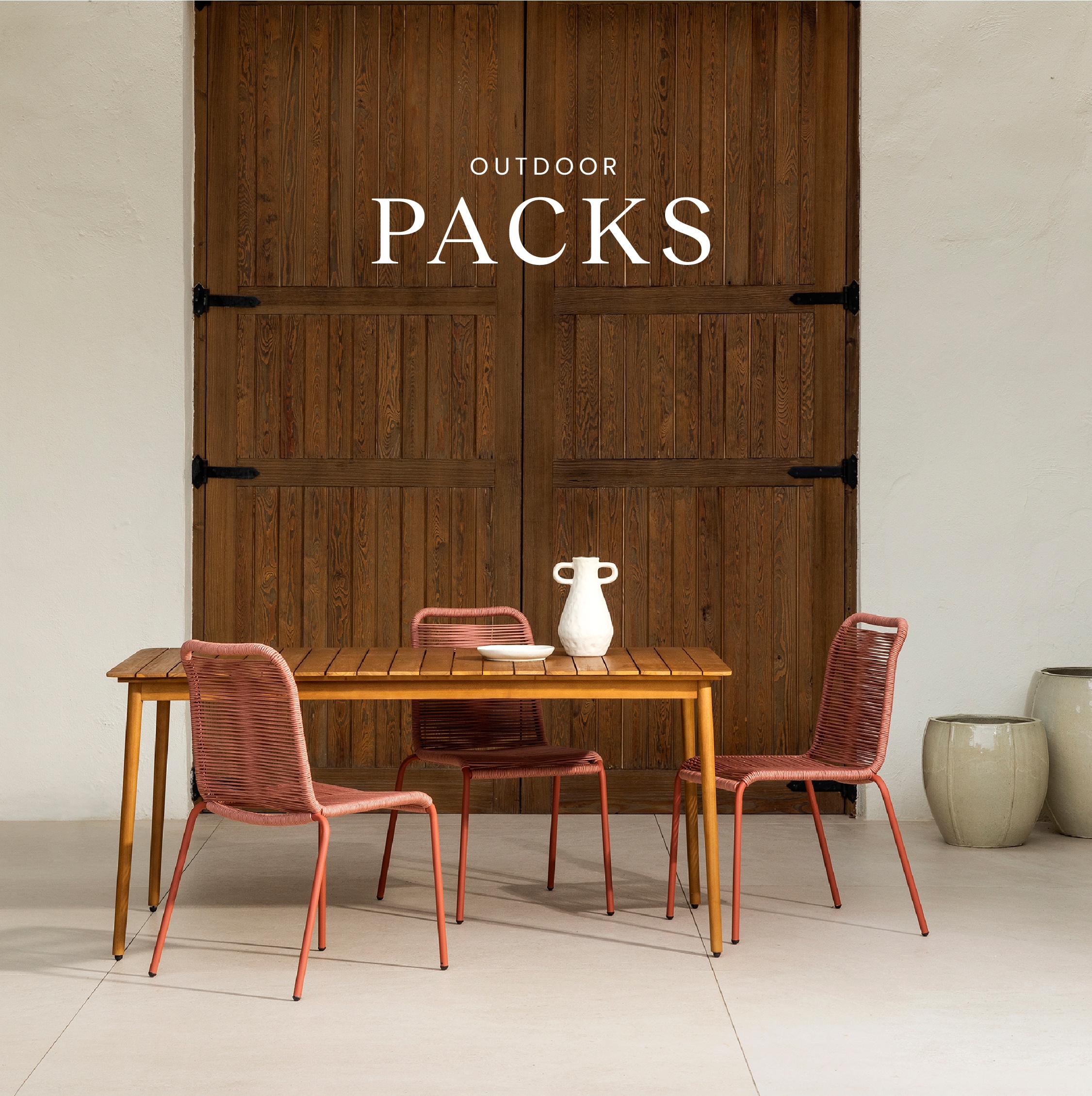 Una amplia variedad de piezas para terraza o jard铆n. Conjuntos para sal贸n para relajarte y sillas y mesas para disfrutar de las comidas y cenas de verano. Descubre nuestra selecci贸n de packs. |